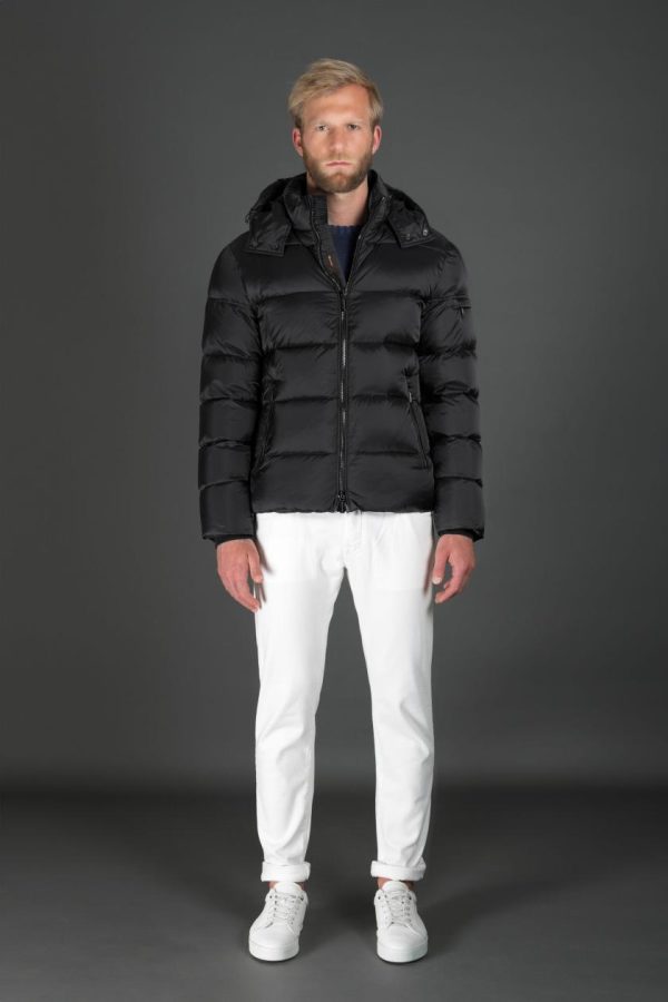 Bomber appartenente alla linea Acqua (1 ombrellino), imbottito in piumino d’oca trapuntato a boudin. Realizzato in tessuto tecnico con resinatura idrorepellente.