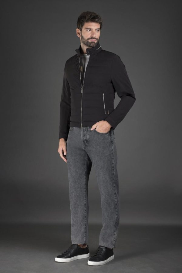 Blouson appartenente alla linea Acqua (1 ombrellino), con maniche lisce imbottite in ovatta termica e corpo imbottito in piuma d’oca e trapuntato a boudin. Realizzato in tessuto bielastico resinato idrorepellente, molto compatto e resistente alla trazione.