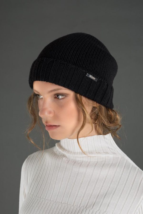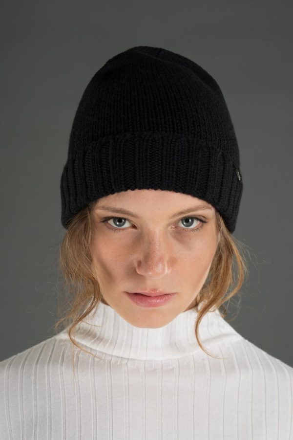 Berretto in maglia rasata realizzato in morbida lana merinos extrafine.
