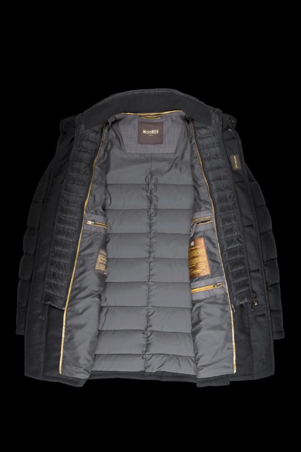 Il modello è alto 186 cm e indossa una taglia MooRER IT 48.