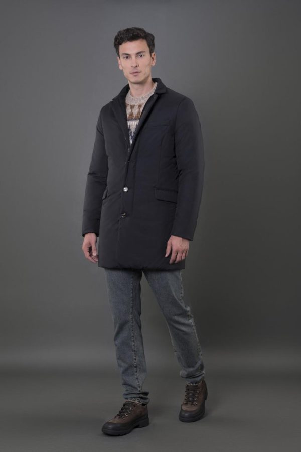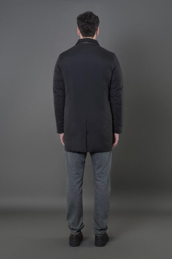 Capospalla liscio appartenente alla linea Acqua (1 ombrellino). Realizzato in tessuto tecnico super leggero opaco 20 denari, resinato idrorepellente e down proof. Imbottito in piuma d’oca e trapuntato internamente a quadri.