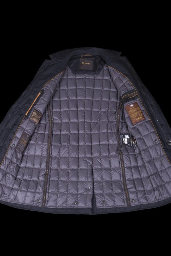 Il modello è alto 186 cm e indossa una taglia MooRER IT 48.
