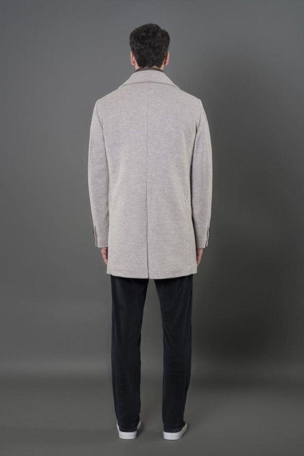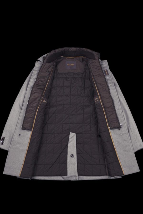 Cappotto monopetto dalla linea dritta. Realizzato in lana beaver di peso intermedio, mista cashmere e tinta in filo. La mano morbida data dalla qualità dei filati conferisce un aspetto elegante al tessuto. Imbottito in calda e morbida ovatta e trapuntato internamente a quadri.