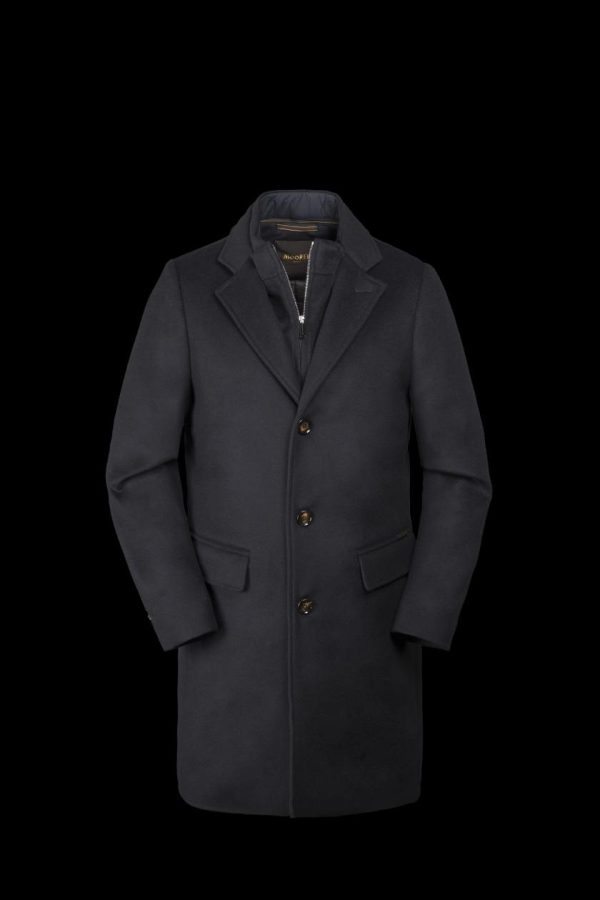 Cappotto elegante dal taglio dritto, leggermente imbottito in ovatta.Realizzato in lana beaver di peso intermedio, mista a cashmere e tinta in filo. La mano morbida data dalla qualità dei filati conferisce un aspetto elegante al tessuto.
