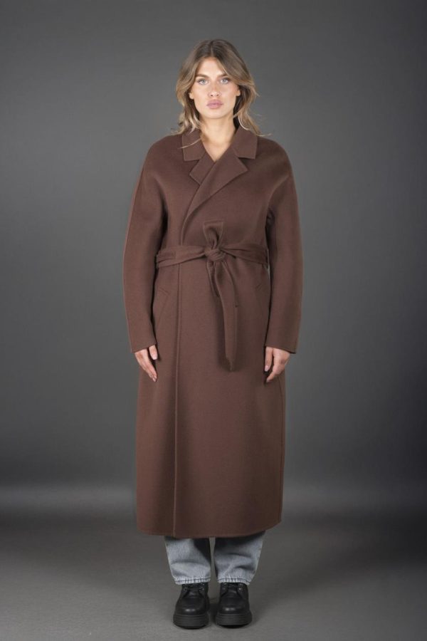 Il capo esterno è realizzato in lana misto cashmere double così come la façon che è ribattuta interamente a mano.