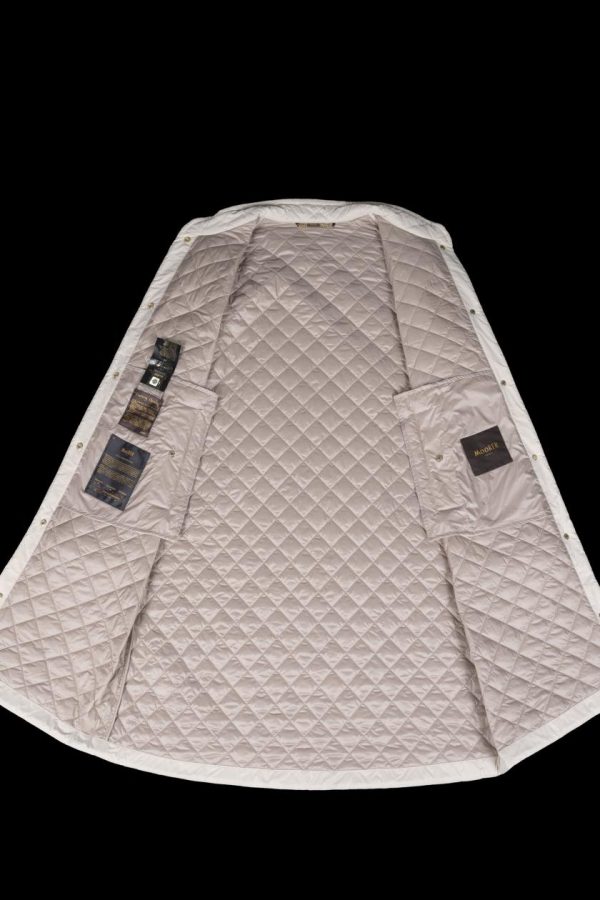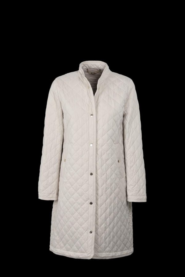 Realizzato in tessuto tecnico in microfibra cangiante con aspetto serico e mano pesca raffinata, trapuntato a rombi e imbottito in morbida ovatta effetto piuma.