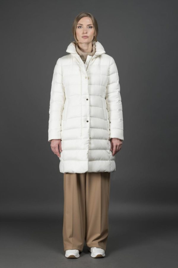 Piumino “car coat” dalla linea slim, un capo dall’attitudine formale, resa sportiva dai moderni dettagli. Imbottito in finissima piuma d’oca e trapuntato a boudin.