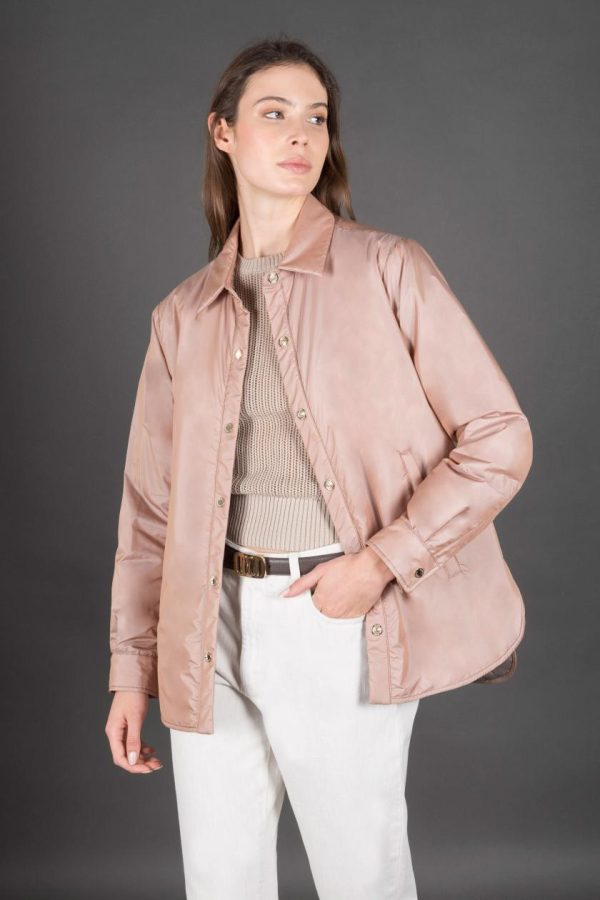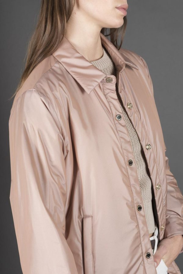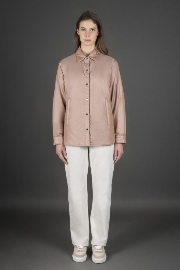 Leggermente imbottita con morbida ovatta trapuntata all’interno. Realizzata in tessuto taffetà tecnico con effetto chambray per uno stile casual raffinato e un riflesso cangiante. La composizione speciale al 50% di poliestere aumenta la brillantezza dei colori, mentre la finitura lo rende leggero e flessibile.