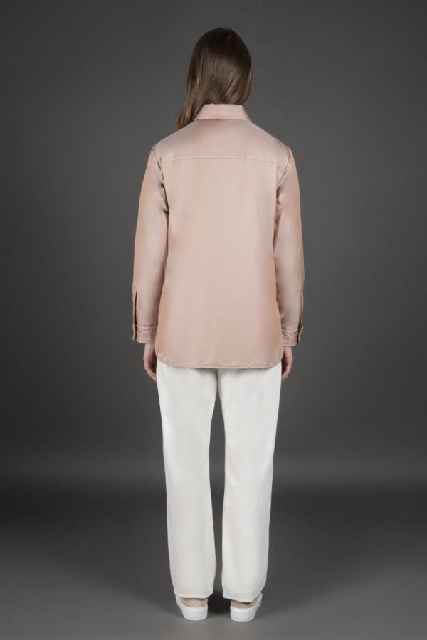 Giacca-camicia dalla linea essenziale ma ricercata con davanti più corto con rispetto al dietro.