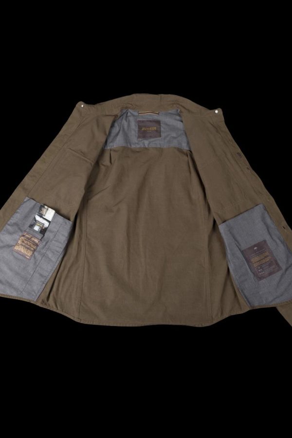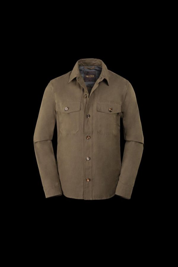 Giacca camicia appartenente alla linea Acqua (1 ombrellino). Realizzata in tela in misto cotone smerigliato, dall’aspetto compatto, resistente all’acqua e traspirante.