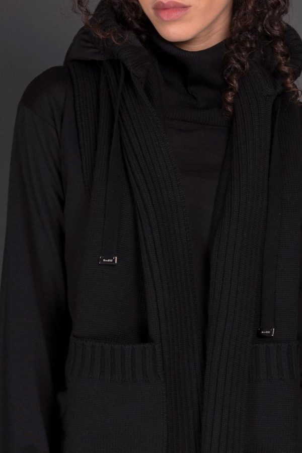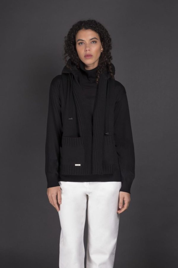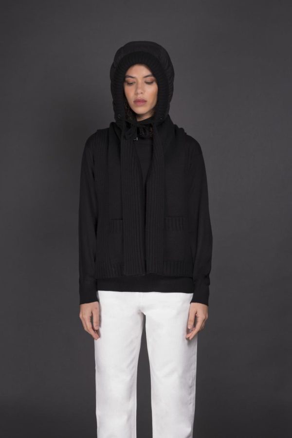 Originale sciarpa con cappuccio. Ideale per completare un look moderno e raffinato.