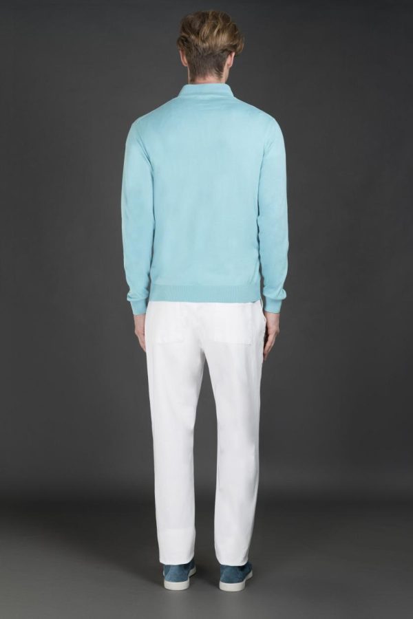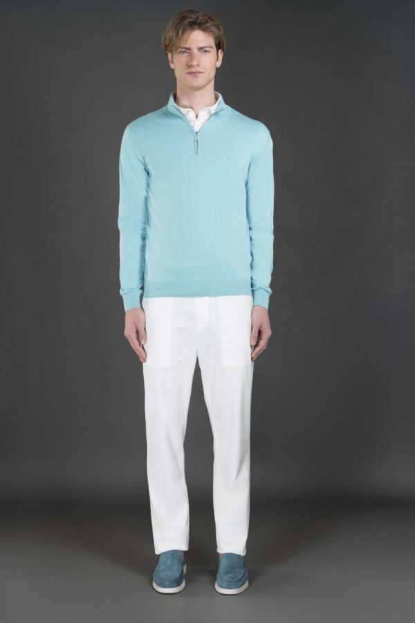 Maglia a mezza zip realizzata in un tessuto d’Eccellenza: Sea Island cotton, il cotone più prezioso al mondo. Un filato dalle caratteristiche eccezionali, fine e resistente quanto quelle di nessun’altra varietà di cotone al mondo, perfettamente bilanciato, leggero e fresco.