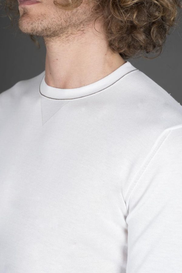 Maglia realizzata in cotone crêpe “zero pilling”, che grazie a una speciale lavorazione, assicura resistenza all’abrasione e minore formazione di pelucchi anche dopo numerosi lavaggi. La lavorazione crêpe del filato ne migliorano freschezza e traspirabilità.