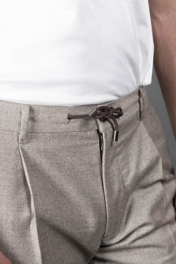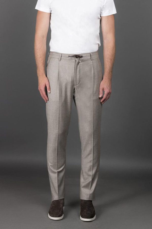Pantaloni realizzati in morbida flanella di lana vergine in micro fantasia.