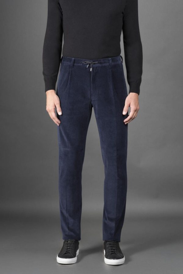 Pantaloni realizzati in velluto a coste 500 righe in morbidissimo jersey di finissimo cotone elasticizzato