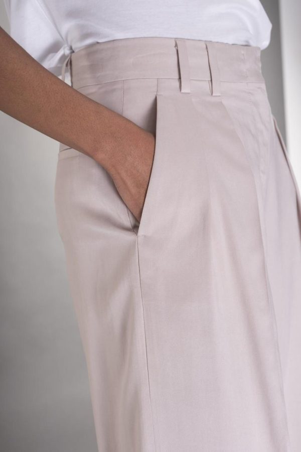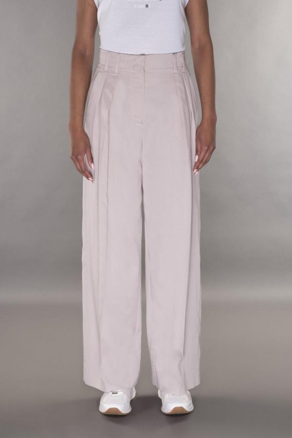 Pantaloni dal taglio classico con pieghe davanti. Realizzati in gabardina fluida in lyocell e cotone, una fibra ecologica derivata dall’eucalipto. Dai colori vividi e intensi è liscia, elastica e traspirante.